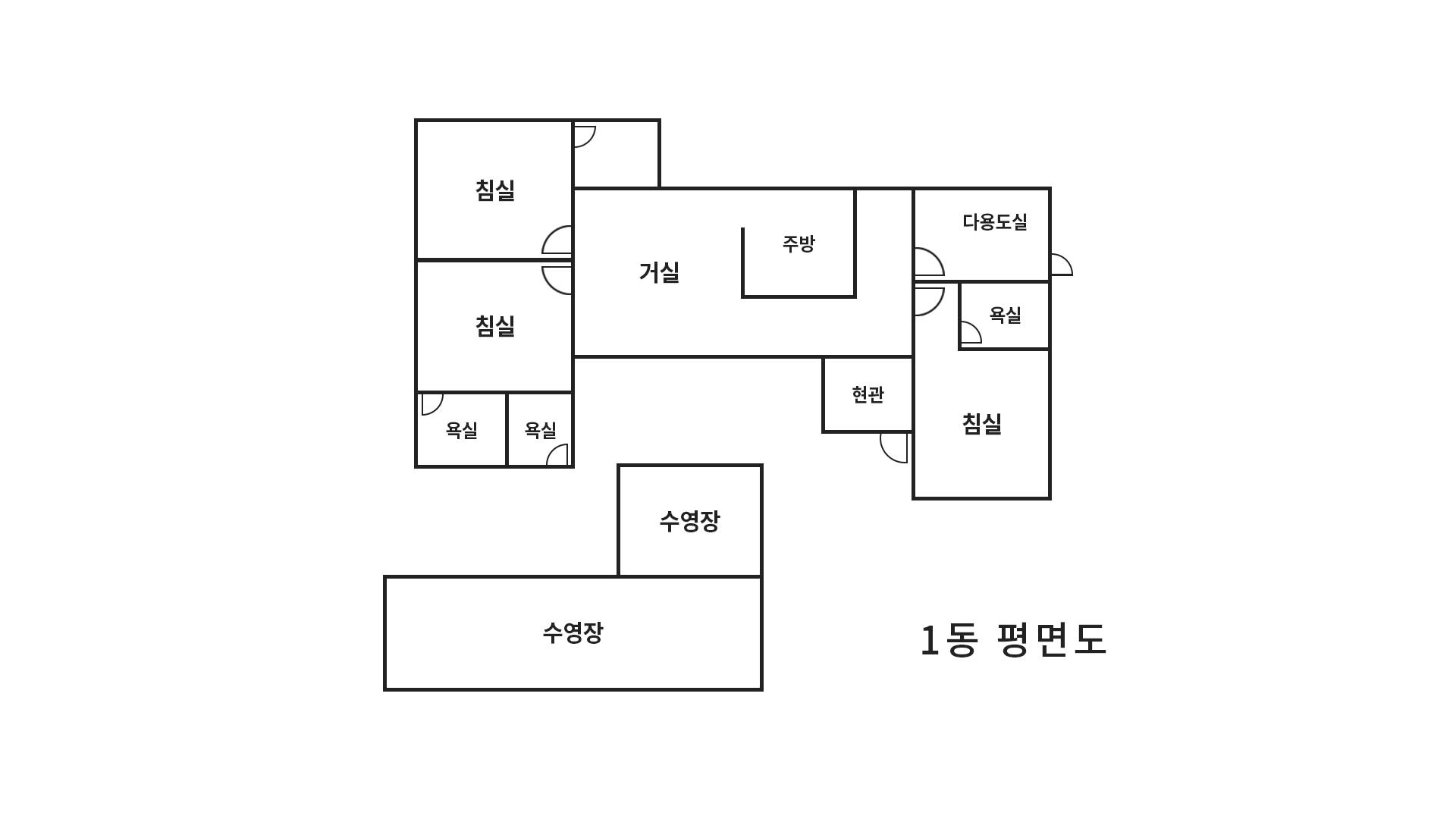 - 유형 : 독채, 거실분리형, 방3, 화장실4, 수영장